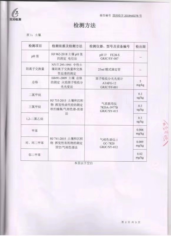 山東華陽農(nóng)藥化工集團(tuán)有限公司土壤環(huán)境檢測(cè)報(bào)告