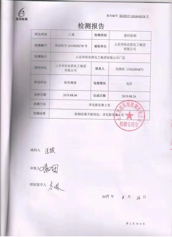 山東華陽農(nóng)藥化工集團(tuán)有限公司土壤環(huán)境檢測(cè)報(bào)告