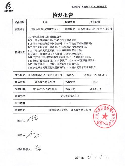 山東華陽(yáng)農(nóng)藥化工集團(tuán)有限公司土壤檢測(cè)報(bào)告